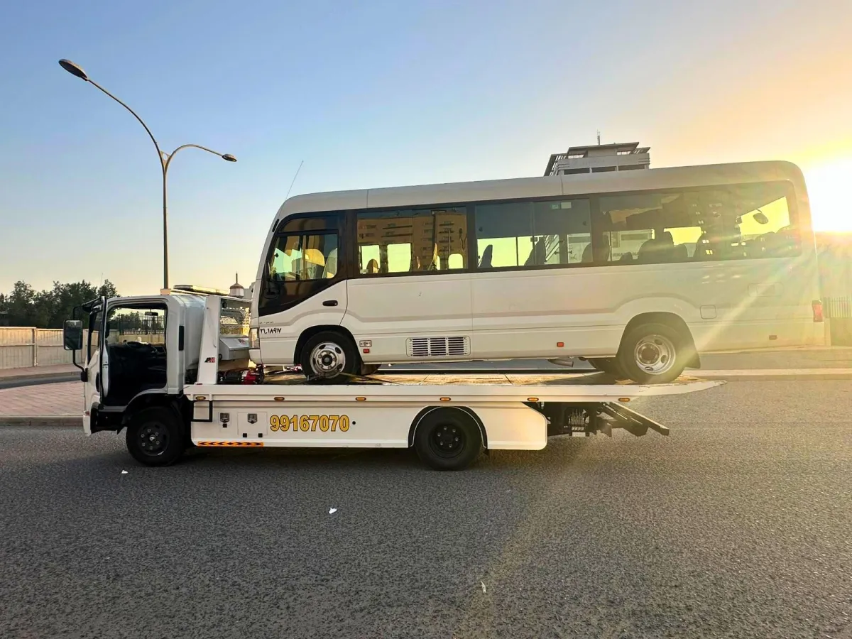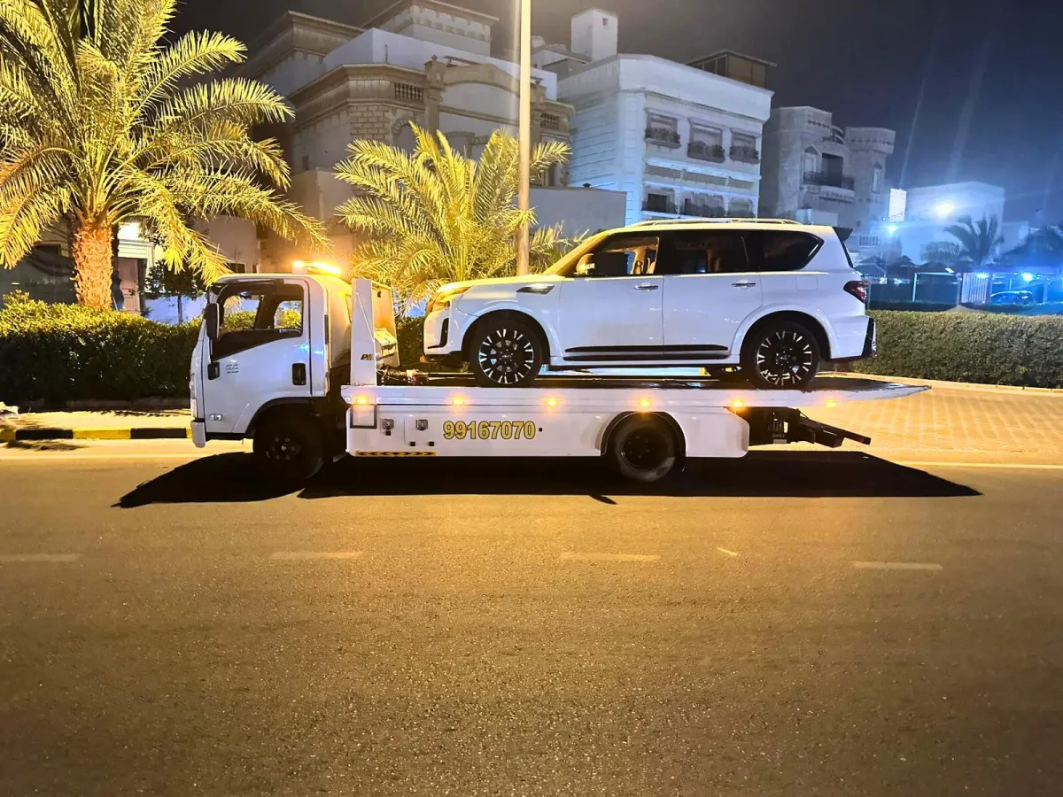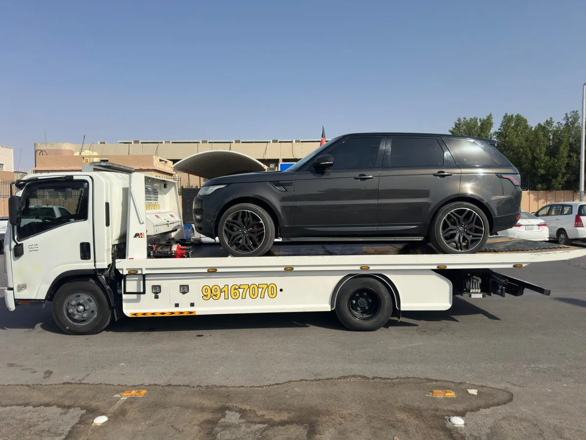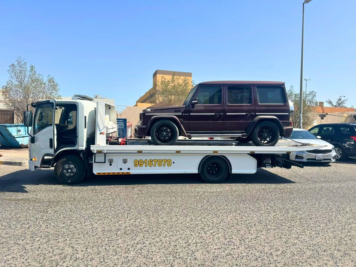 نقدم خدمات سحب ونقل السيارات المعطلة، نقل السيارات الفاخرة والرياضية، المساعدة على الطريق، تبديل الإطارات، تشغيل البطارية، ونقل السيارات بين المناطق داخل الكويت